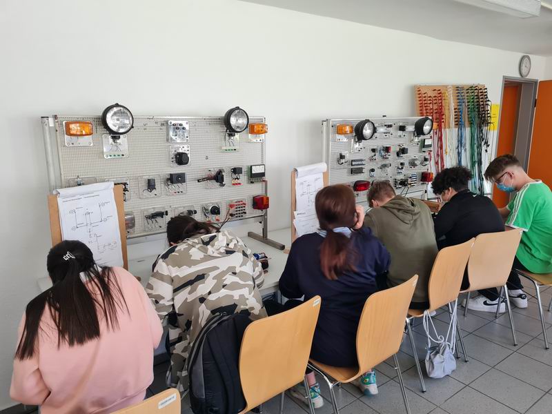 Die Fahrzeugtechnik war ebenfalls nützlich und interessant, da wir uns einen Überblick über die Fahrzeugtechnik verschafft haben, indem wir lernten wie ein Stromkreis funktioniert und angeschlossen werden muss.