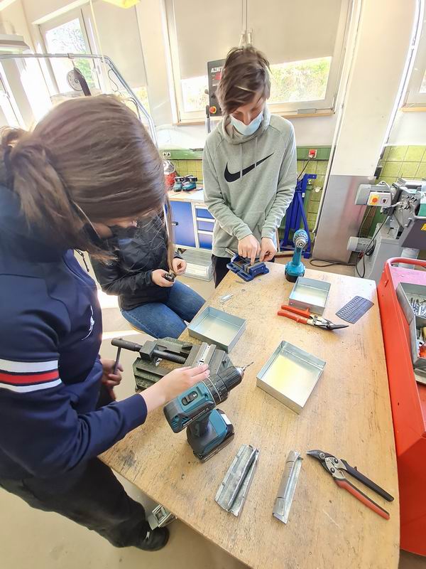 Wir lernten außerdem den Rohstoff Metall kennen und stellten daraus einen Smartphonehalter und eine Werkzeugkiste her. (Pawel Klasse 8a)