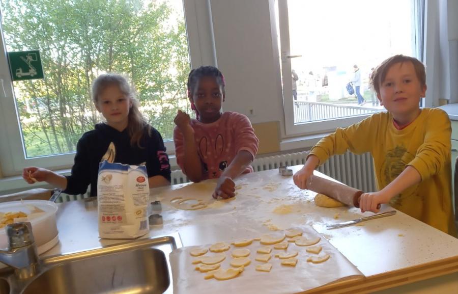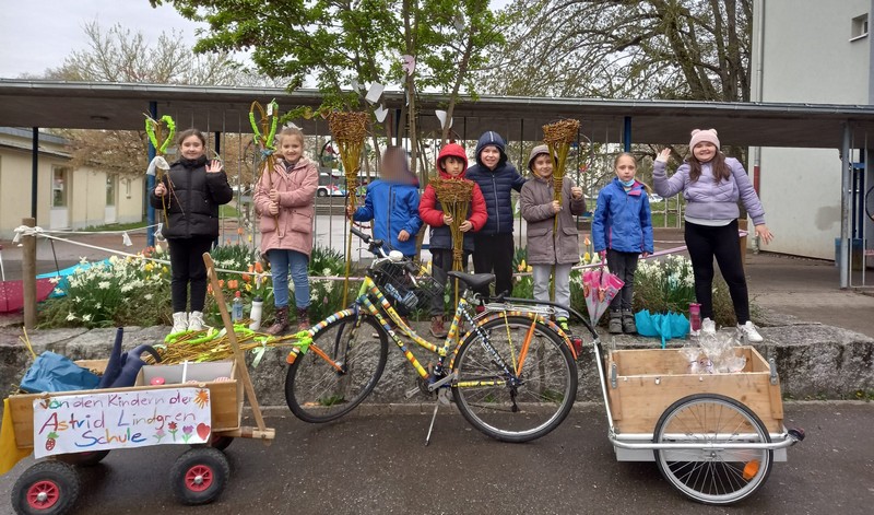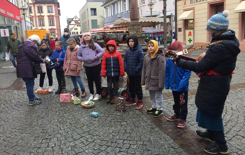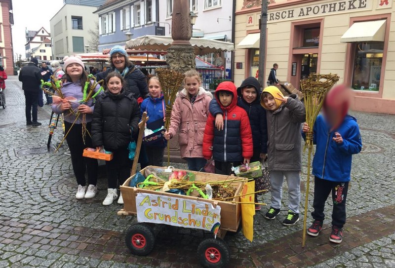 Unsere Garten AG waren mit Frau Kiefer auf dem Wochenmarkt und hat neben Frühlingslieder auch noch Basteleien aus dem Garten verkauft.