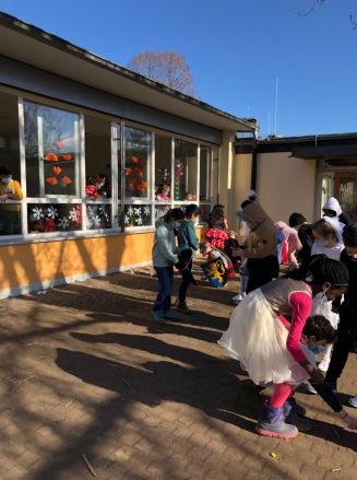 Am letzten Tag vor den Fasnachtsferien gab es für die Grundschüler ein paar Süßigkeiten von den Kindern der 1a, die zum Gizzigrufen die Klassen besucht haben.