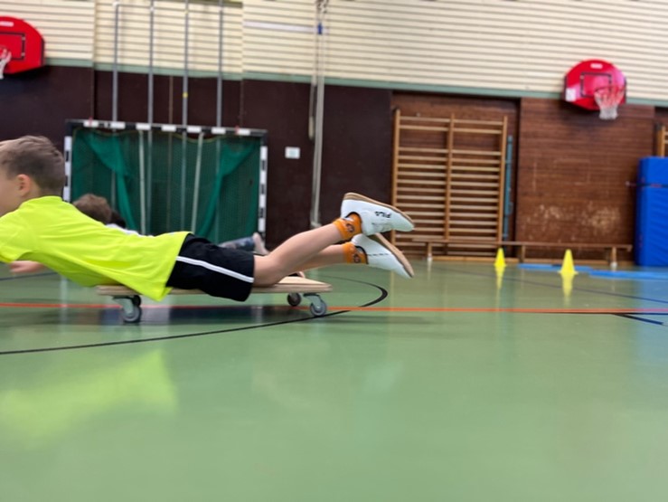 Am Freitag, den 8.12.2023, fand an der Astrid-Lindgren-Schule der Winter-Sporttag statt. Die Schülerinnen und Schüler der Klassen 1-4 haben an verschiedenen Stationen unterschiedliche Wettkämpfe ausgetragen, bei denen der Teamgedanke im Mittelpunkt stand. So sammelten die Kinder bei einer Tarzan-Staffel, Basketball-Korbjagd, dem Rollbrettrennen und vielen weiteren Aufgaben im Klassenverband Punkte. Betreut wurden die Stationen zuverlässig von den Zehntklässler:innen der Werkrealschule. Insgesamt hatte die komplette Schulgemeinschaft einen tollen Vormittag mit viel Freude an der Bewegung.