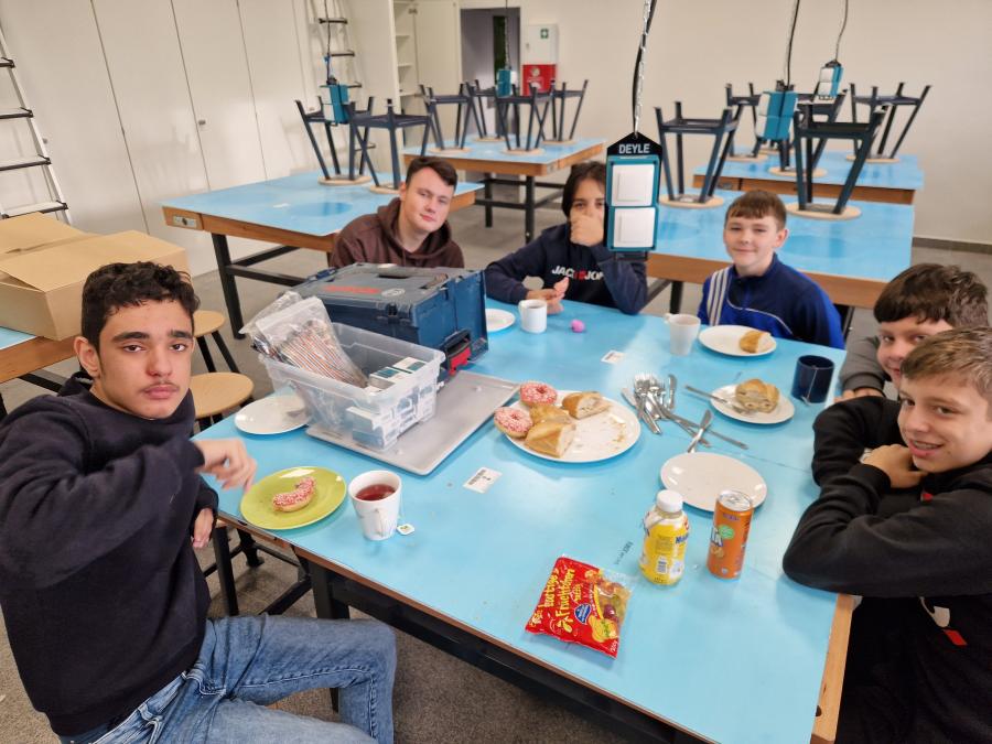 Wie es sich für eine engagierte Handwerksgruppe gehört, wird die Arbeit stets von einem Handwerkerfrühstück begleitet. Dieser gemeinsame Moment stärkt nicht nur die Teambindung, sondern gibt auch die nötige Energie für die aufregende Arbeit, die vor ihnen liegt.