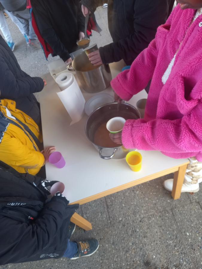 In den Wintermonaten bereiten die 3. bezw. 4. Klässler jeden Mittwoch mit Frau Kiefer zur 1. grossen Pause leckere Kürbissuppe zu.