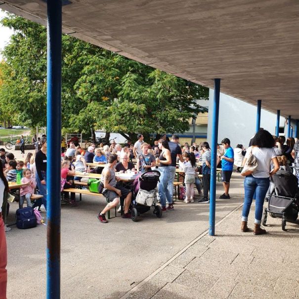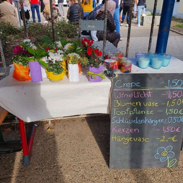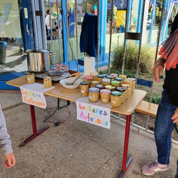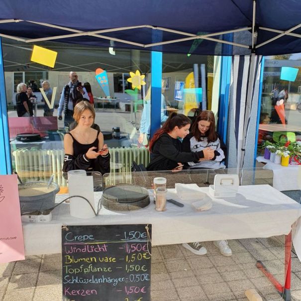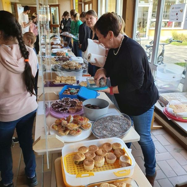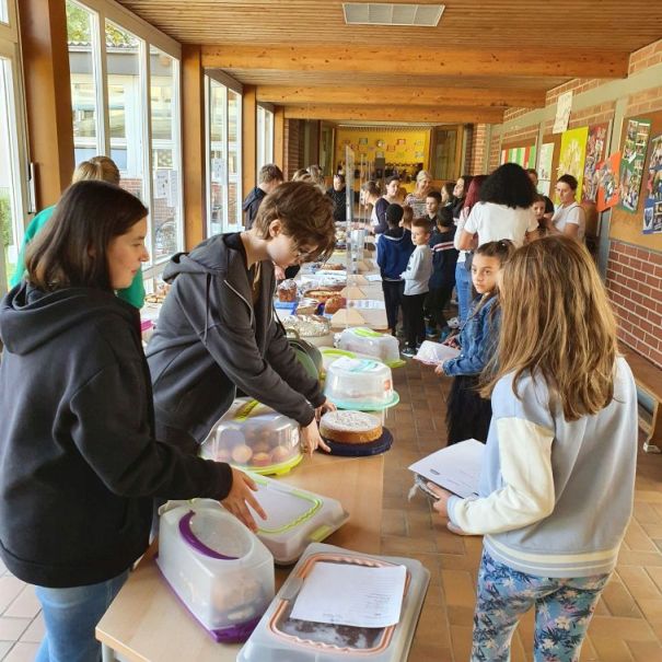 Mit den vielen Kuchenspenden von der Elternschaft, einem Waffelstand von den Schüler*innen, einemm Stand mit Grillwürsten und Pommes Frites war auch für den Hunger gut gesorgt.